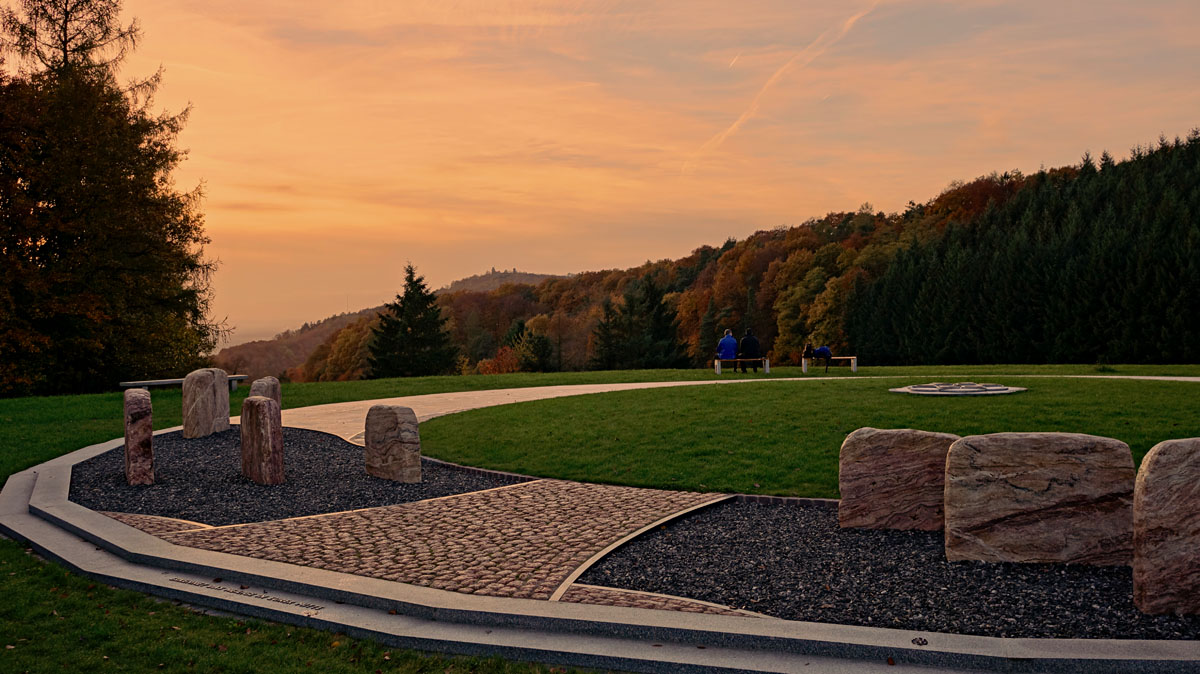 This unusual installation that inspires visitors to reflect on the Jewish-German history and intercultural understanding has embellished the hiking route from Fürstenlager to Reichenbach for several years. Unfortunately, the fascinating project is still not signposted. Situated on a mount in the Odenwald that offers views that stretch towards the Rhine Plain, Bensheim artist Thomas Zieringer constructed a monument circle, that measures 26 meters, framed by boulders from Odenwald Quartz. A relief that symbolizes the Tree of Life is located at its heart – a bird’s-eye view of a stylized mesh of branches or roots. “It symbolizes the perception of oneself in an inner experience”, explains the artist. At the same time, the Peace Memorial inspires visitors to reflect on the Jewish-German history and the darkest chapters of German history. Occasionally, according to Jewish tradition, visitors place pebbles on top of the commemorative stones of the Peace Memorial.Most hikers arrive by chance at this informative as well as meditative place, for the monument is not signposted in the region. The Peace Memorial can be reached after an exciting hike with some seriously steep sections that demand good physical fitness. It starts at the Fürstenlager at the edge of Bensheim-Auerbach. The route first leads past Herrenhaus, after which it continues straight over the Apfelallee in the direction of Eremitage. Then, it leads right up the hill, after which hikers take a left at the “Hermann-Schäfer-Eiche”. Here, follow the signs for the Felsenmeer, then the signs of the Alemannenweg. The route is also suitable for cyclists with plenty of energy – either in their legs or in an additional battery. They will stay on the forest road, while hikers can also use the smaller paths that run parallel to it.At a fork in the road, hikers follow the signs for Borstein to quickly reach the hill with the Peace Memorial. Various information panels explain the idea behind the stone circle erected as a private initiative. At a short distance from the circle rests the Jerusalem memorial stone bearing the Hebrew inscription “Yerushalayim” as a representation of the “City of Peace”. The other side of the stone points westward, towards Hochstädten. Down there, where neat detached houses are being constructed, the Marmorit factory once stood. It’s mining galleries were used to produce weapons as the Second World War was drawing to a close. Greek forced labourers and concentration camp prisoners were used for the production; many of them (22 Persons) lost their lives.An information panel refers to this dark episode of Bensheim’s history, largely pushed out of the local minds. It additionally features a somewhat dramatic appeal for intercultural understanding. “'This Peace Memorial strives to inspire visitors to reflect on their own lives and facilitate positive developments in themselves and others”, explains Zieringer.One might think that such an initiative would be met with general approval. However, even though representatives of the Bergstraße district participated in the inauguration ceremony, several conflicts ensued that almost proved fatal to the project and the association that’s behind its realization. Zieringer did not have the necessary approvals to install the Jerusalem memorial stone, which frustrated the district authorities. As a salient detail, the department head responsible for executing the removal order for the Jerusalem memorial stone, benches, and information tables was a politician of the Green Party, who used to be known for their rather unconventional mindset and procedures. The official report stated that the “unchecked building activity” couldn’t be accepted; moreover, the “vegetation didn’t fit the location”.The district authority was met with great acclaim, albeit from a rather undesirable group: Neo-Nazis above all celebrated the decision to tear down the monument in Facebook comments. The association managed to, with the help of an attorney, clear the air and find a resolution with the district authority. By now, the installation has been modified to the satisfaction of both parties. “The demolition order was suspended in autumn 2014 and this issue is resolved”, explains Zieringer. “The idea to tear down a Jerusalem memorial stone in Germany turned out to be unacceptable in the end.” After all this, the artist continues to construct his monument, planning to add two angel’s wings with a border of white marble pebbles and a rainbow made of glass mosaic.After a hefty dose of inner reflection, hikers can continue to satisfy their bodily needs. The Waldgasthaus am Borstein is situated behind the striking rock formations, with an inviting terrace and a menu of both light and heartier dishes. The ideal stop for a breather, after which the road leads steeply down into the center of the village of Reichenbach. From here, the monument site isn’t signposted yet either. Hanne Holuscha, deputy head of Odenwald Tourismus GmbH, has agreed to review the situation: “It is a gorgeous site; the images and texts that I read on the website gave me goosebumps.”